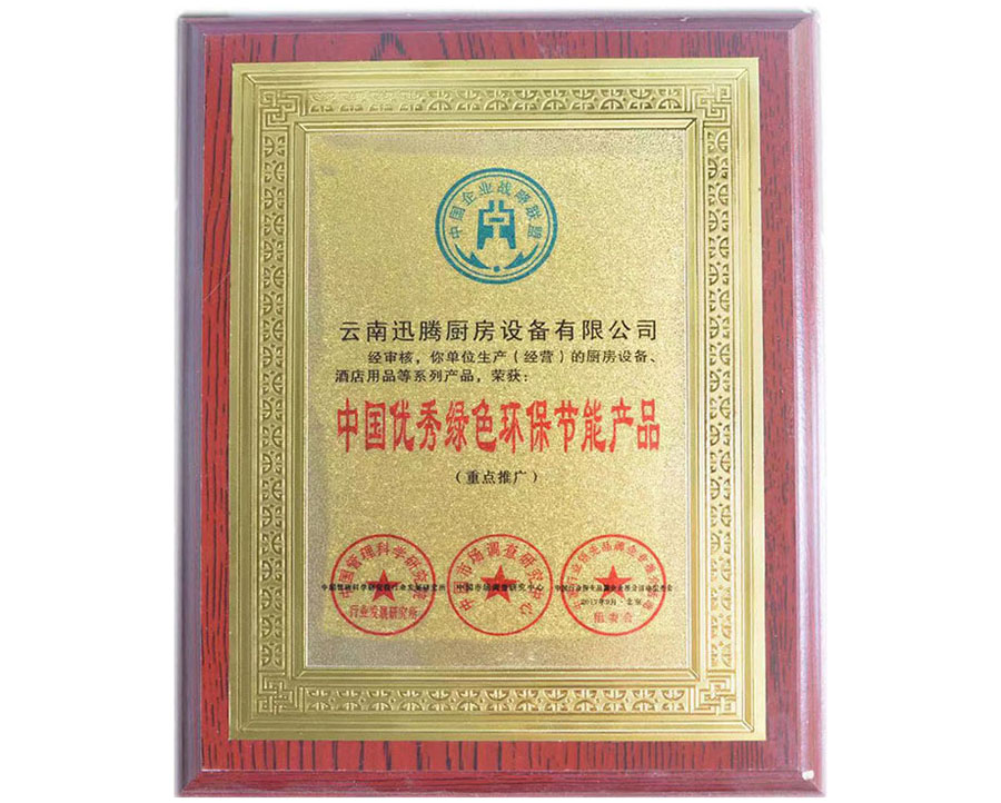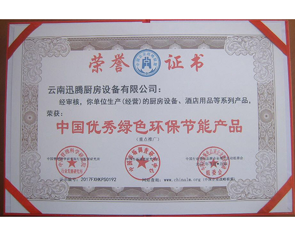 中国优秀绿色环保节能产品荣誉证书
